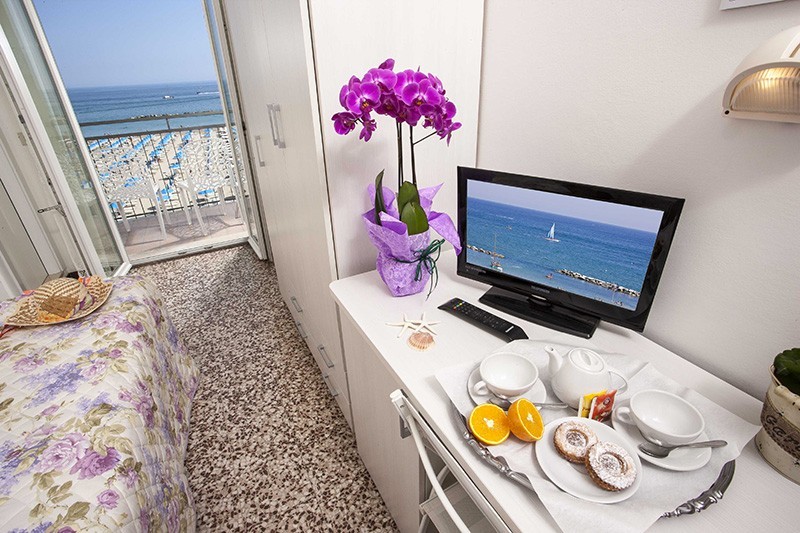 The recently renovated Hotel Garden is located in the center of Gabicce Mare, directly on the beach and on the Via Veneto promenade.